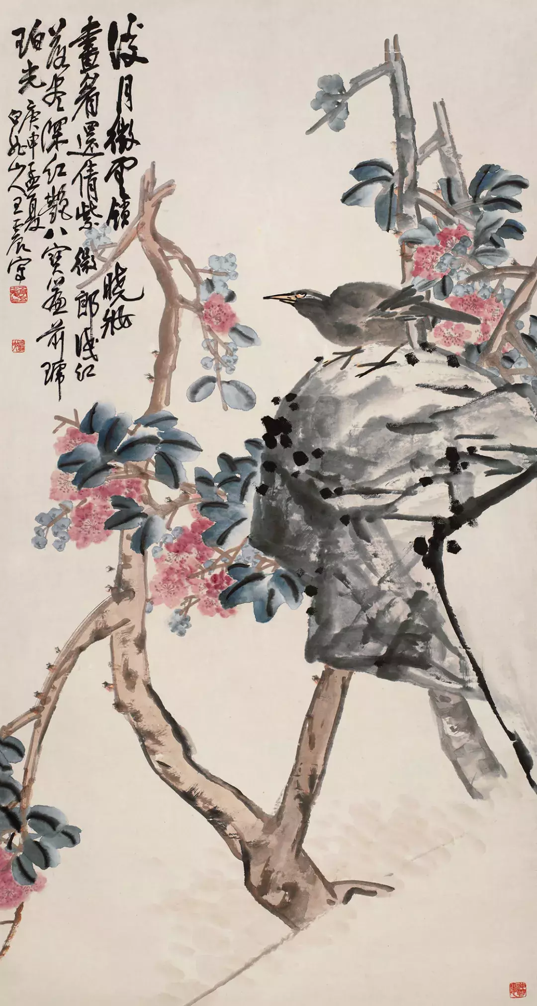 海棠画眉图 126cm×67.2cm 纸本设色 中国国家博物馆藏