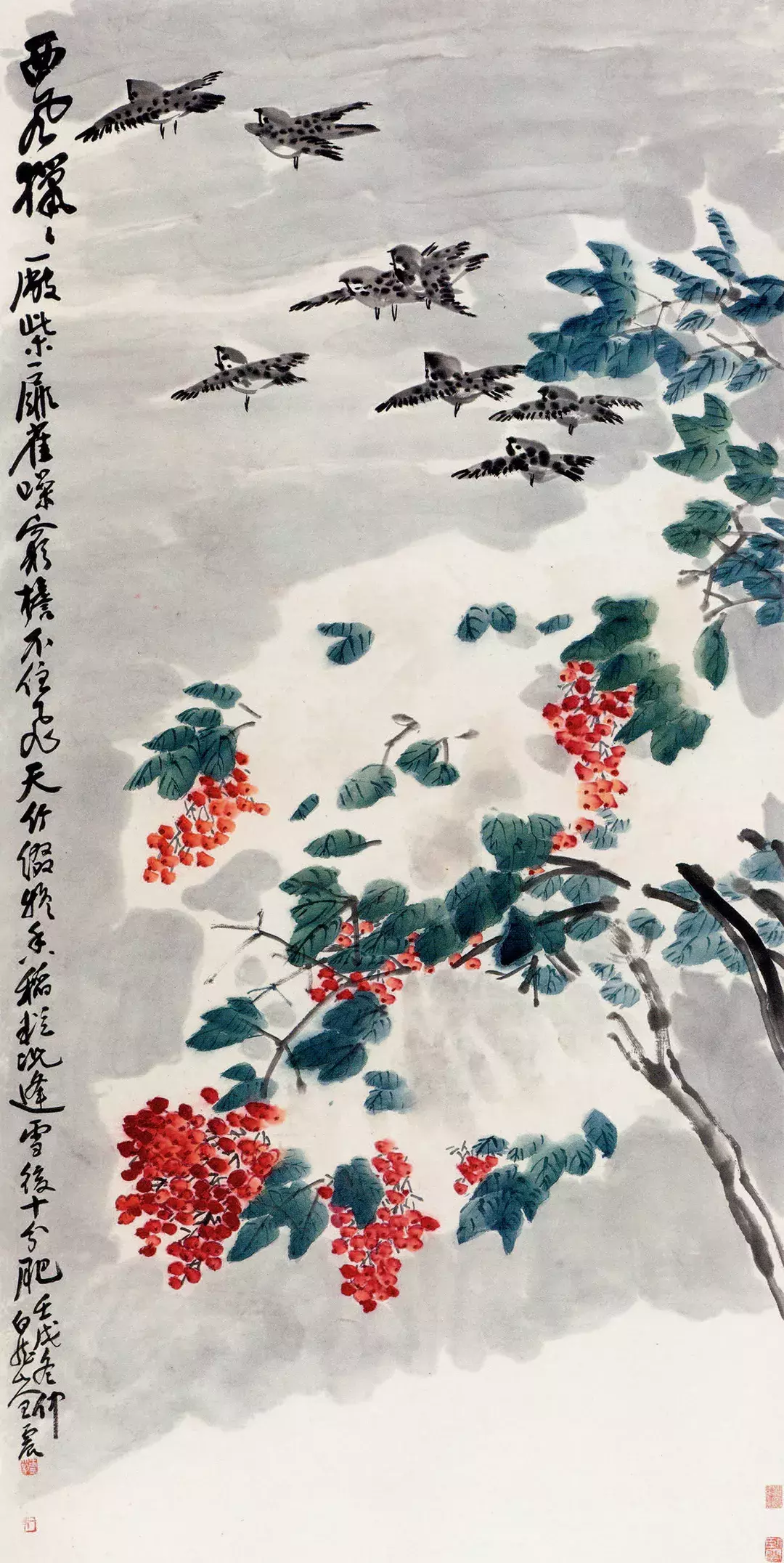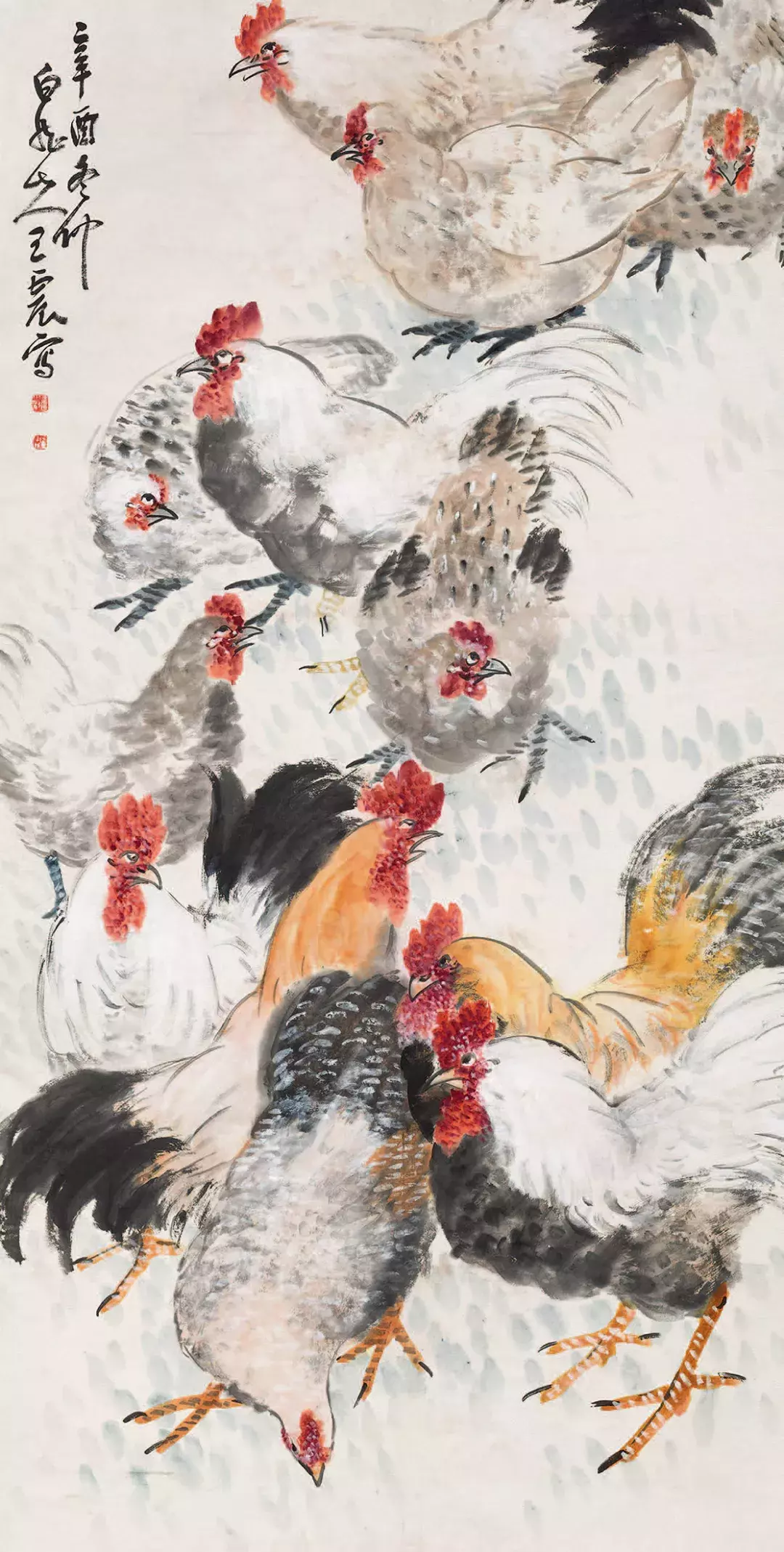 群鸡图 136cm×68cm 纸本设色 浙江美术馆藏