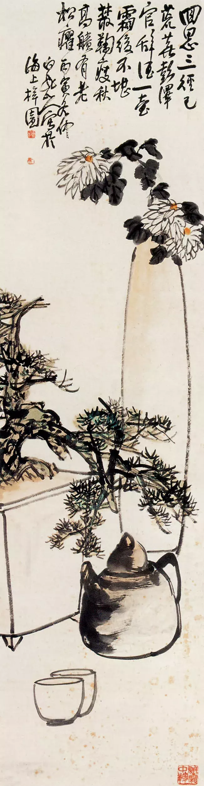 王震的作品不仅在国内享有盛誉,还远播海外,尤其是日本。他与吴昌硕的合作,更是被传为佳话,“王画吴题”成为了当时画坛的一段佳话。他的山水画《松径观云》等作品,现藏于台北“故宫博物院”等著名博物馆。