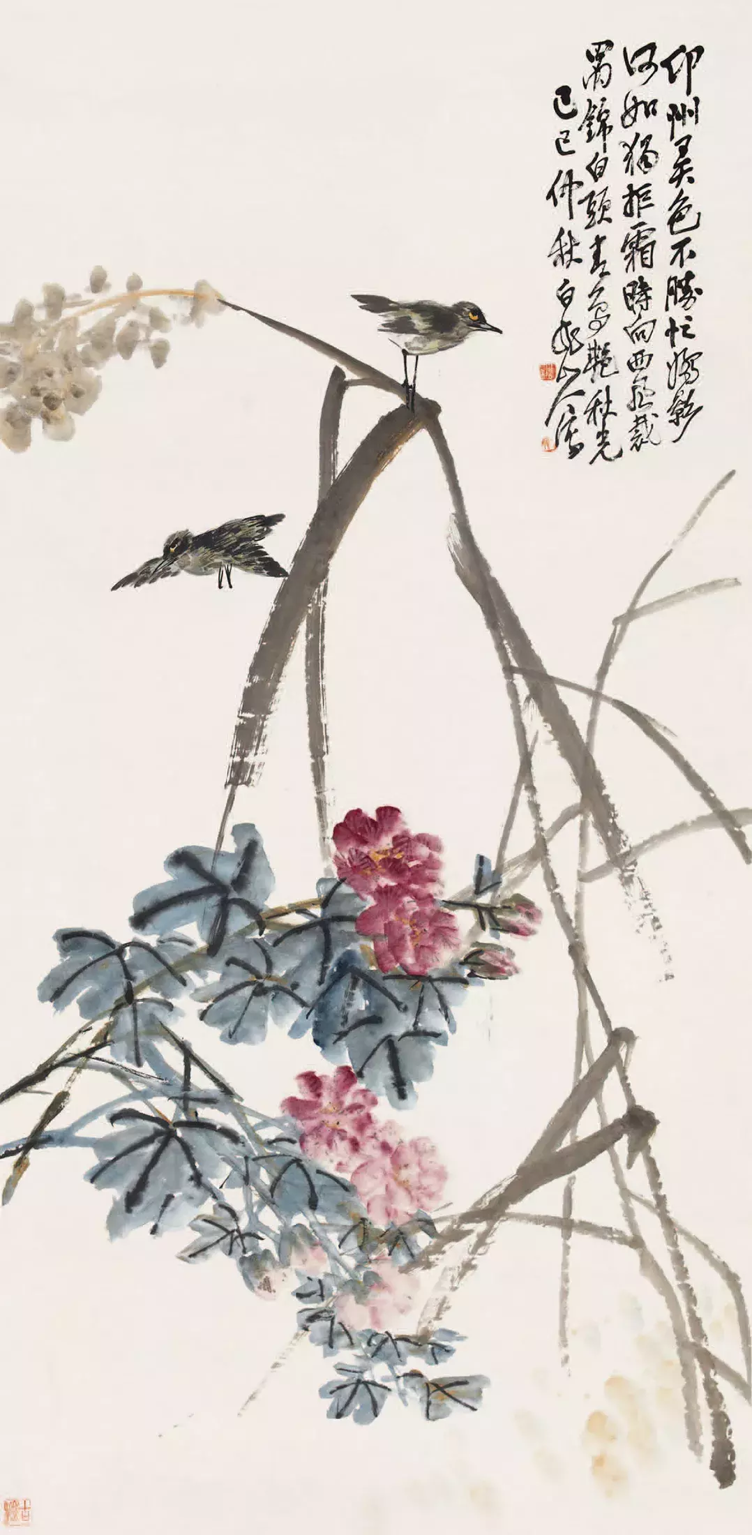 花卉中堂 136cm×67cm 纸本设色 台北“故宫博物院”藏